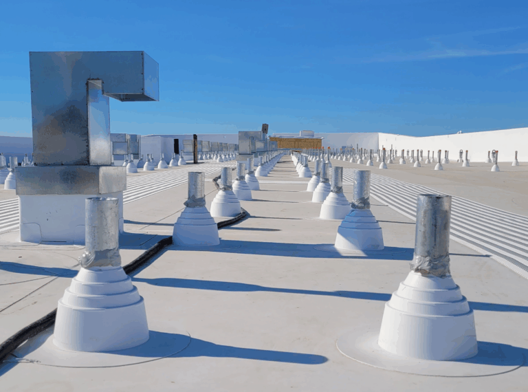The roof penetrations on the Mixed-Use Residential building, one of the designs to increase energy efficiency and sustainability. Photo by Bikramdeep Singh.
